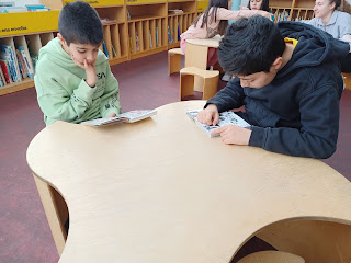 Ahir vam anar a la biblioteca Juan Marsé, la del nostre barri. Ens van explicar com es cataloguen esl diferents llibres i després vam poder tenir una estona de lectura lliure, que vam haver d'acabar, per falta de temps, però que estàvem gaudint al màxim (només heu de mirar les fotos)
